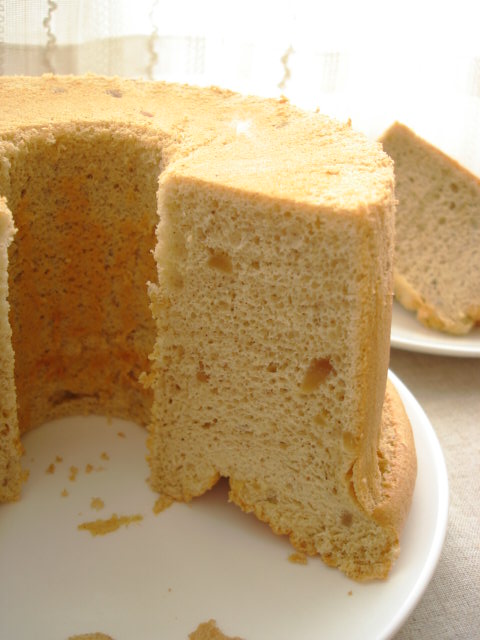 バターケーキ系やクッキーでは、スパイスを焼きこんだタイプを時々見かけますけど、シフォンでは珍しいですよね。
