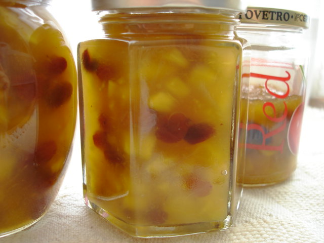 房干しレーズンとパイナップル。しかもラム酒で香づけされてるなんて、最高!!頭の中、パインとレーズンでいっぱいになってしまいましたので、いつかまねっこさせてください~^^。本当は一番大きそうな瓶をこっそり頂きたいところですが^m^