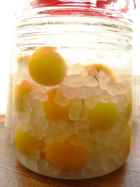 2日にホワイトリカーと氷砂糖で、漬け込みました。