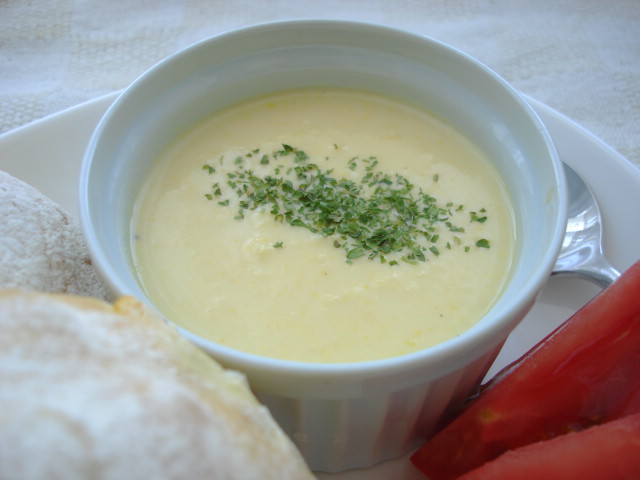 昨晩は、こんな感じのコーン・ポタージュを作ったり、
