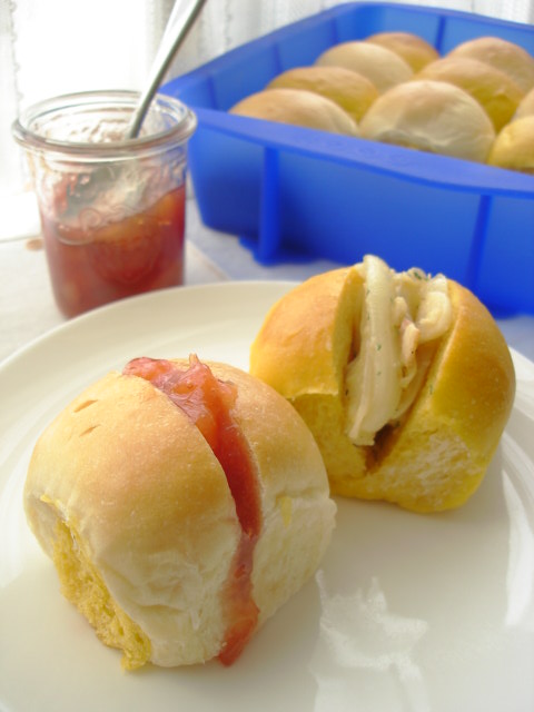 ちぎってそれぞれ、ジャムを挟んだり、前日のお夕飯の