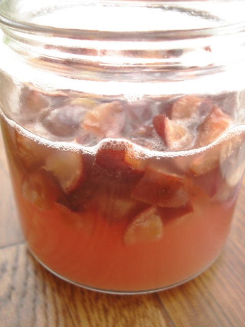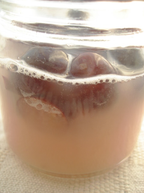 ピオーネ、水、蜂蜜と、あとレーズン酵母液少々を加えて、